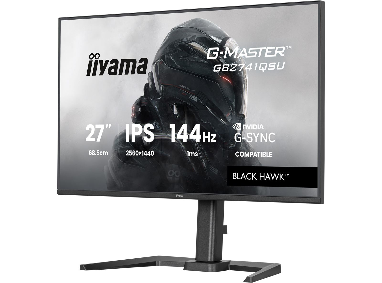 Get ahead with the 27" GB2741QSU Black Hawk monitor with IPS Panel Technology, 1ms MPRT and height adjustabe stand