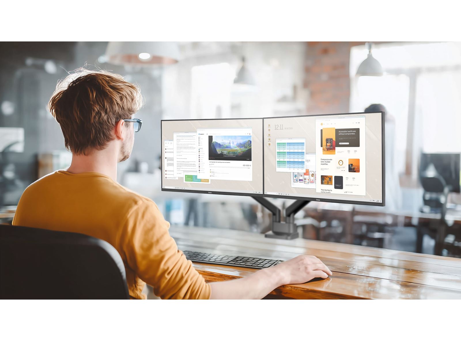 The ProLite X2493HSU is the ideal choice if you are looking for a compact, high-performance display that integrates effortlessly into a multi-monitor workspace. Its four-side ultra-slim bezel design creates a clean, modern aesthetic and delivers seamless visuals across multiple screens.